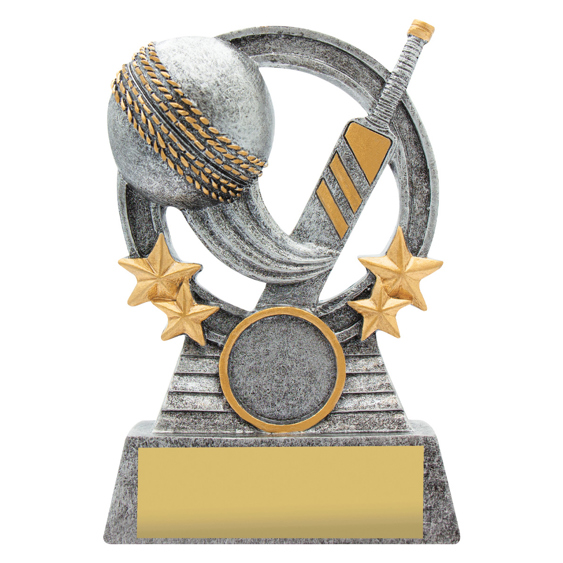 The Comet series of Cricket trophies feature iconic bat and ball elements framed by an elegant star inspired design. Finished in antique silver colour with gold highlights. These trophies offer great value for money and are available in 3 sizes. Space for your Free club logo insert with Free engraving on a gold metal plate.