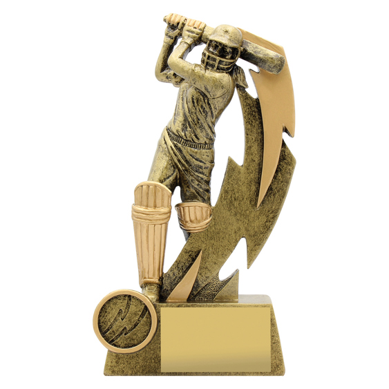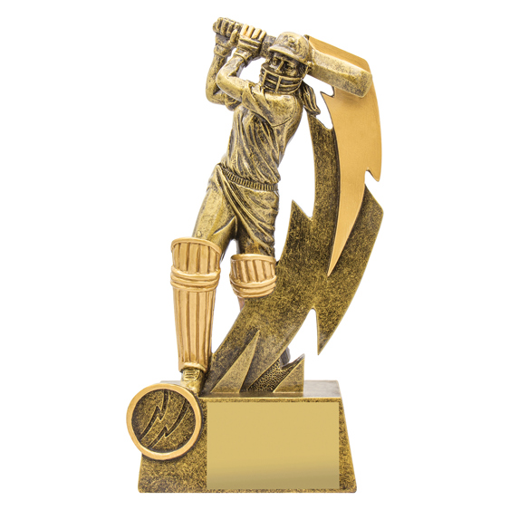 The Cricket Shazam trophy series offer an ideal option for all your player participation awards. Bowler, fielder, batter and a cricket theme options are offered in this range of stunning trophies. The Shazam Female Batting Trophy is suitable for your club’s special batting awards or for all your participation needs. These classic gold trophies present a dynamic batting theme against a lightning bolt inspired background. Available in 4 popular sizes. Free club logo insert available as well as Free engraving.