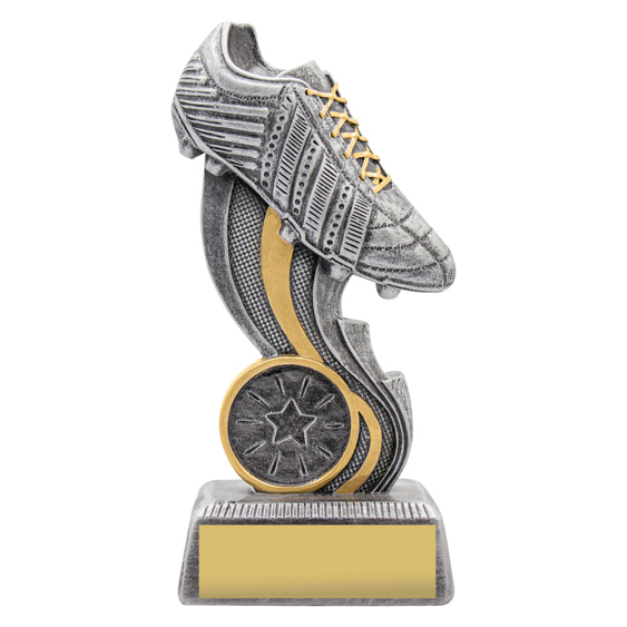 The Dynamo Boot Antique Silver offers a brilliant new modern design showcasing a boot atop of a silver and gold swirling tower. These trophies are perfect Football/Soccer. They are available in 3 great sizes and include space for your free logo centre and free engraving.