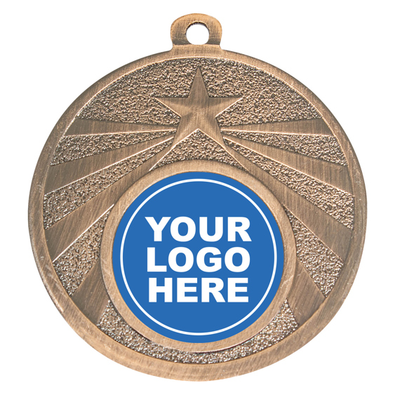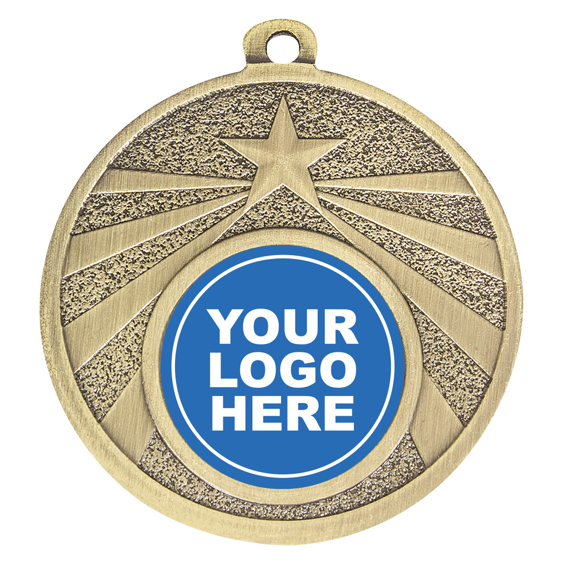 Awards Warehouse presents the Budget Starshine medal featuring an iconic laurel wreath and star combination. The medal offers a prominent central space for your free 25mm club/event logo centre. Available in gold, silver or bronze. 50mm in size. Each medal has space on the back for your free engraving requirements and comes with a free neck ribbon in your choice of colour.